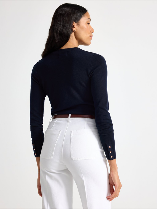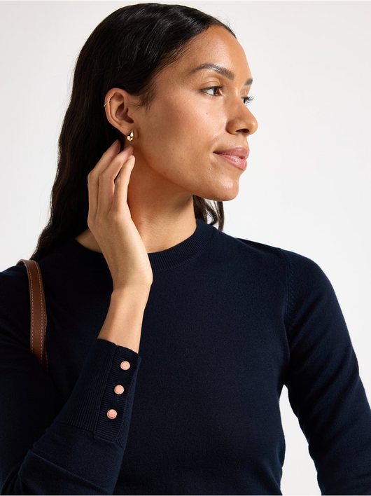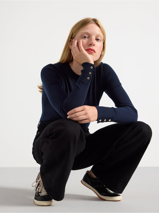 A fine-knitted jumper with lovely details such as sleek buttons at the sleeve endings.