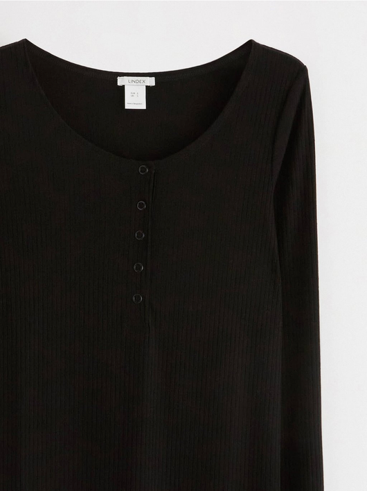 - Round neckline with button placket