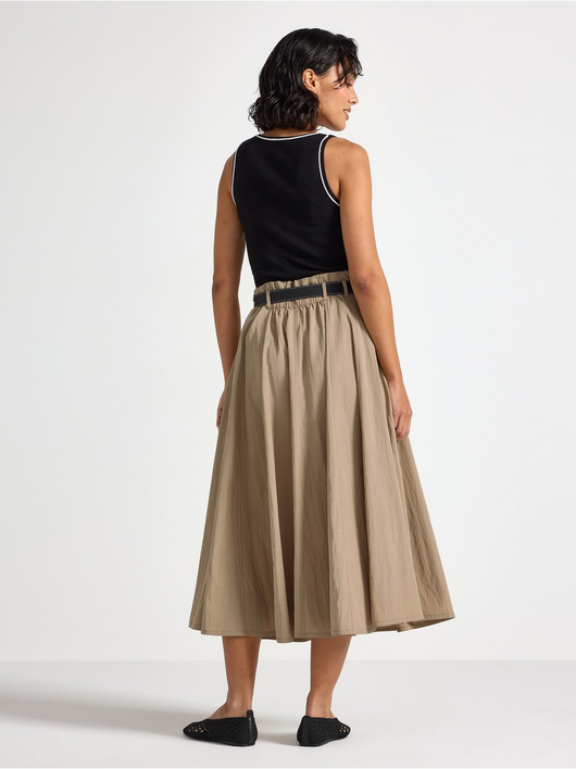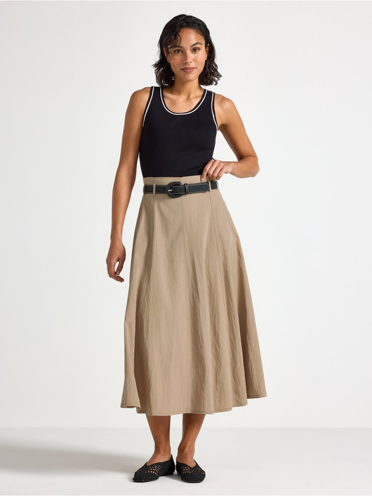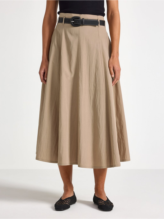 Midi skirt with a flared fit and decorative seams.