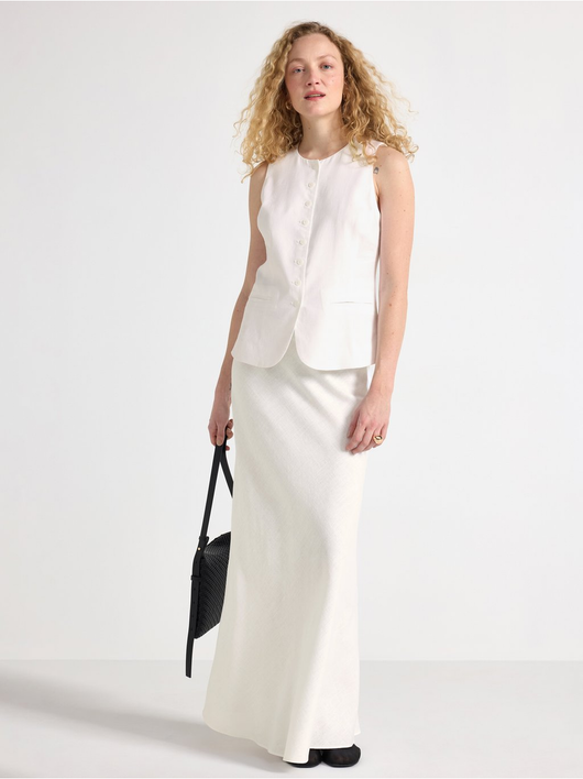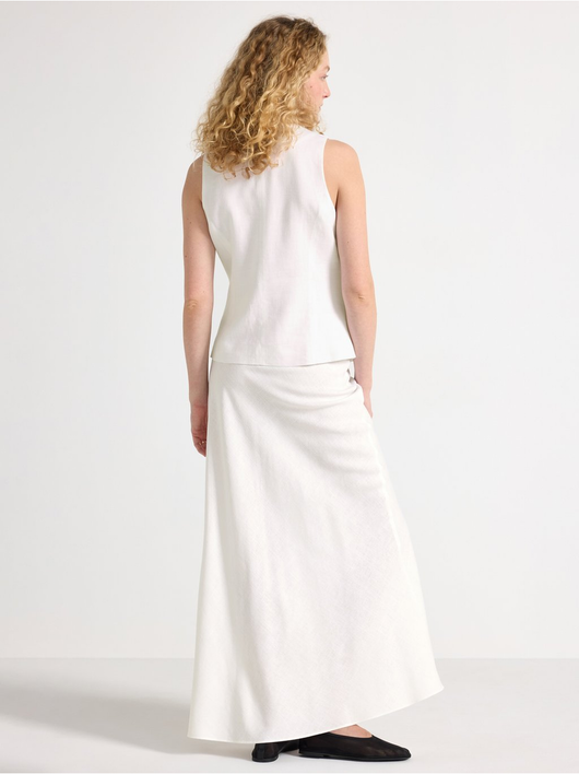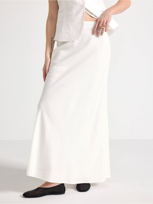 Flowy maxi skirt in viscose and linen with a comfy elastic waist.