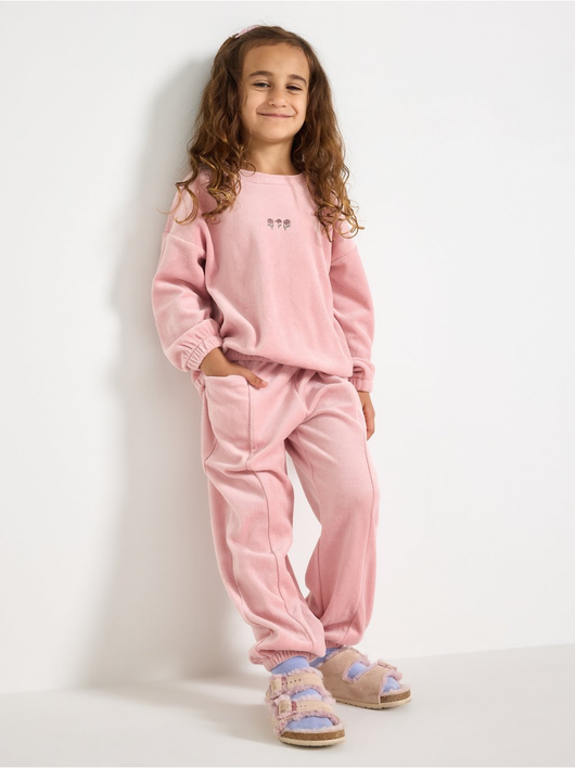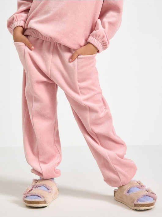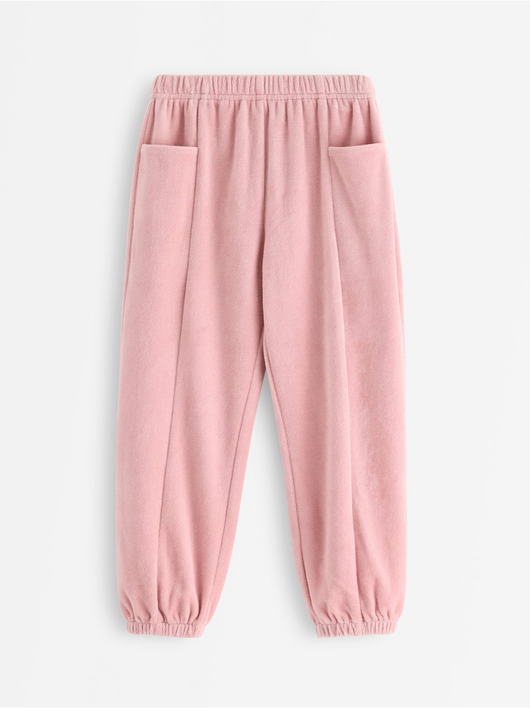 Joggers in velour with a relaxed fit, adjustable waist and pockets.