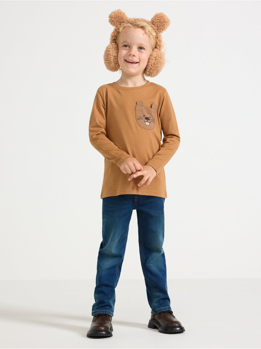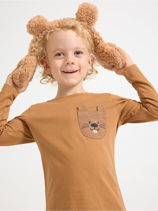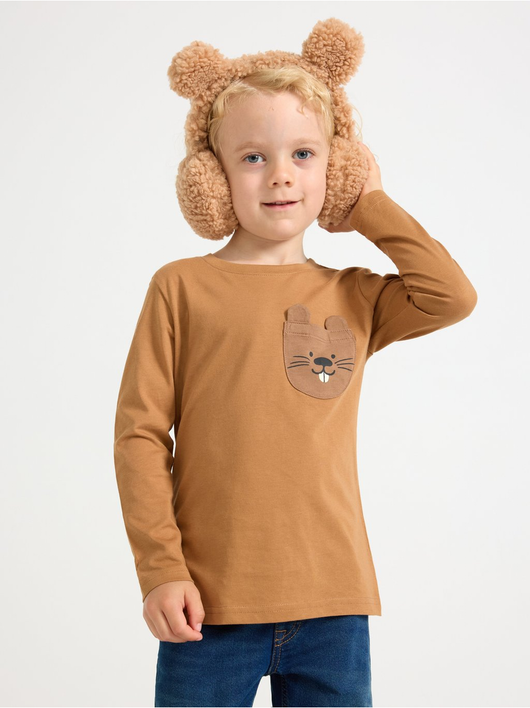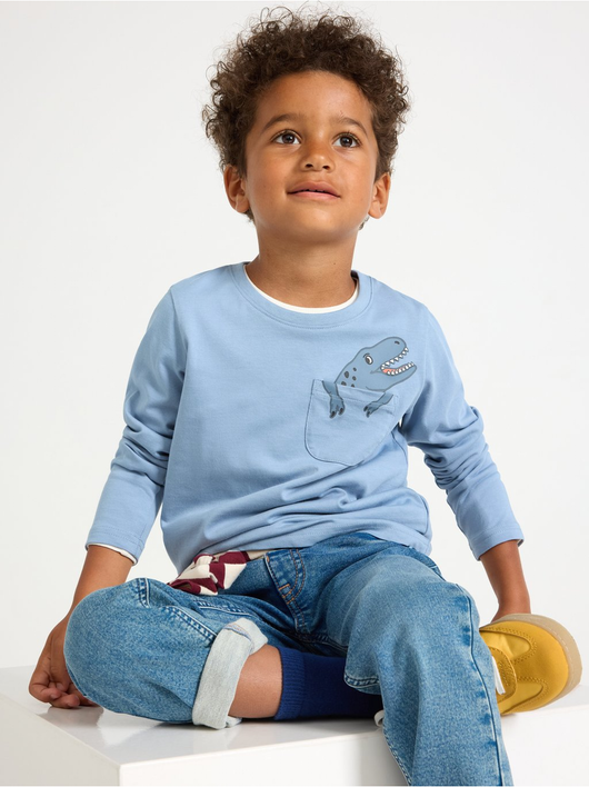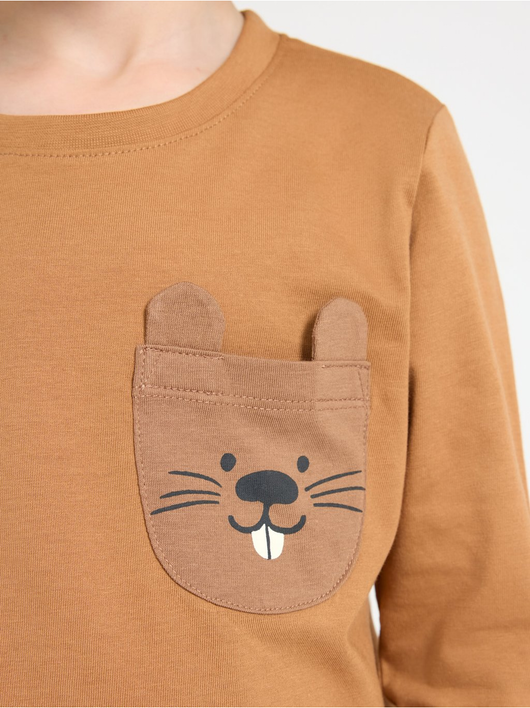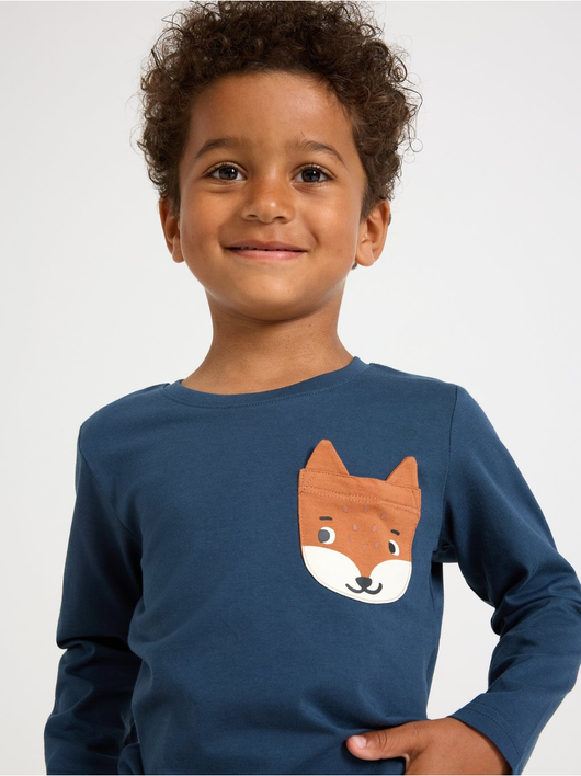 Long-sleeved top in soft cotton with a cute pocket to chest.