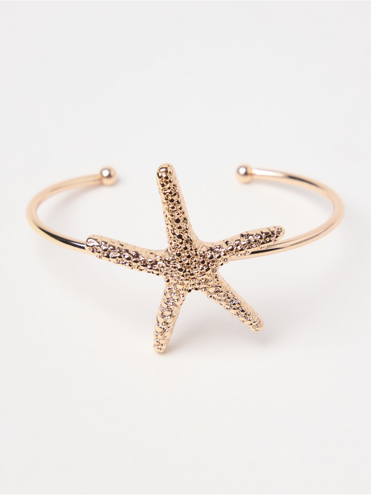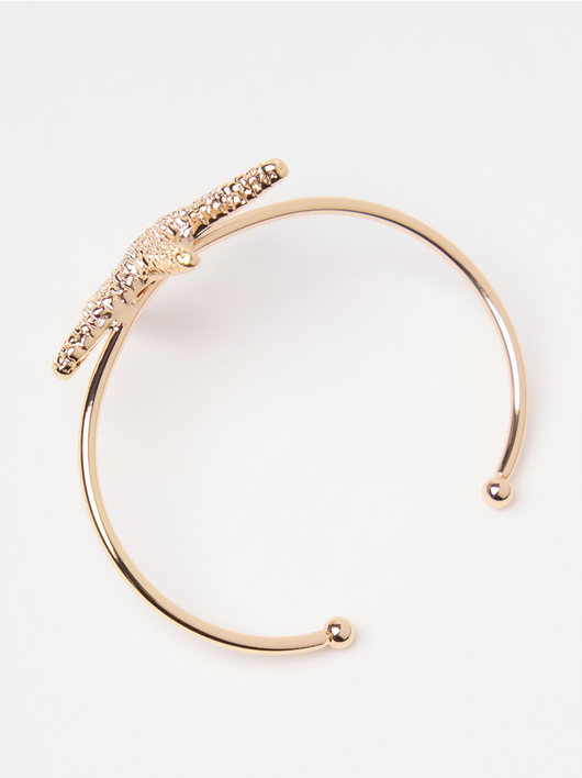 Sleek bangle bracelet in coloured metal with a decorative starfish.