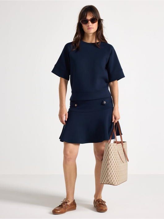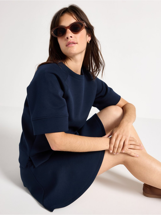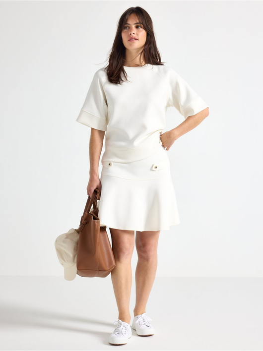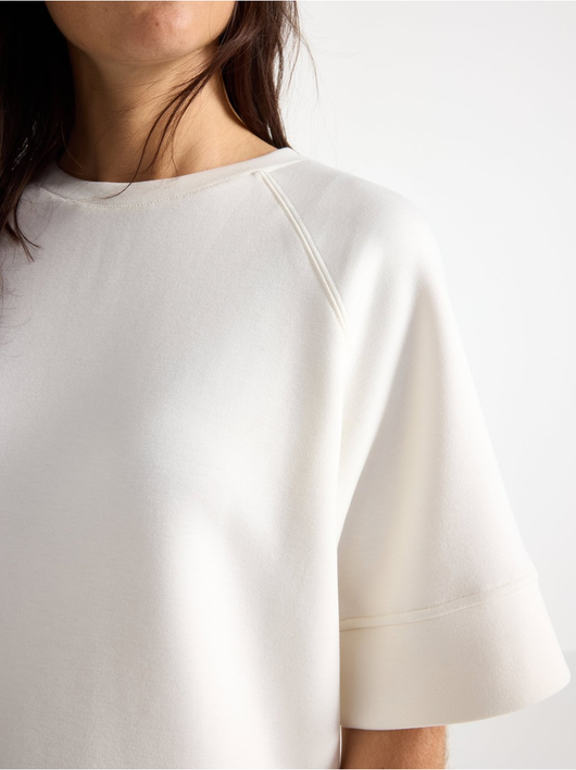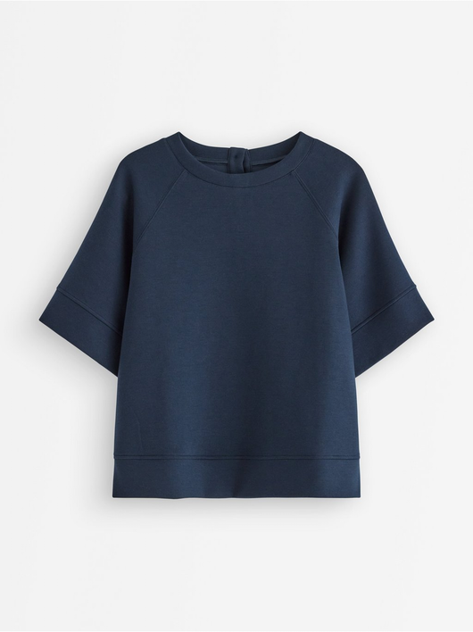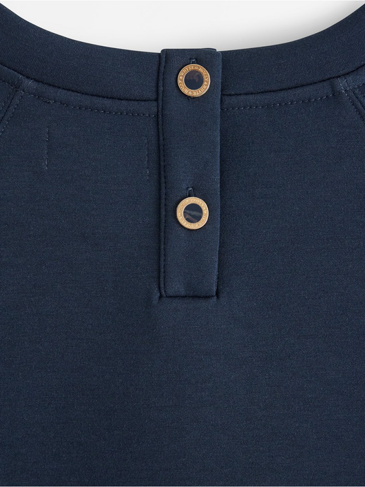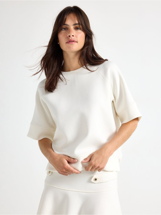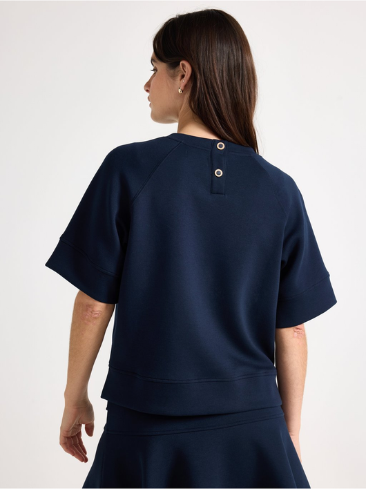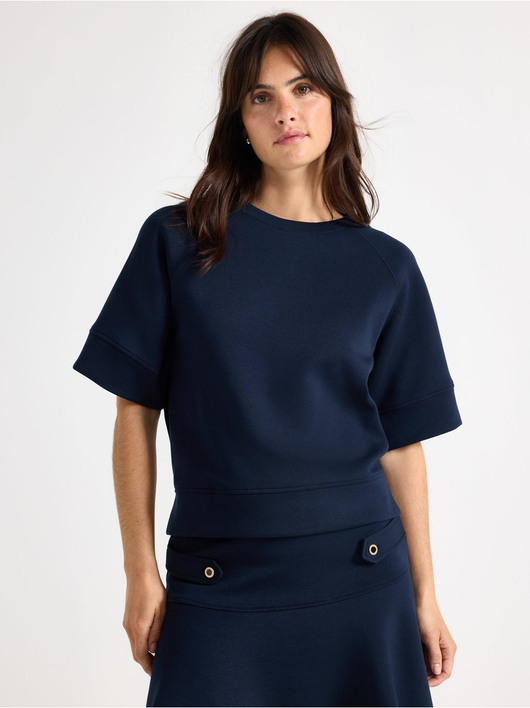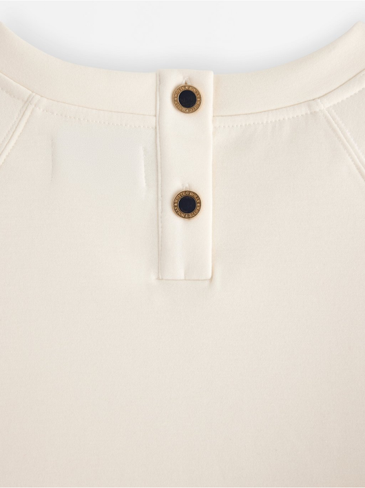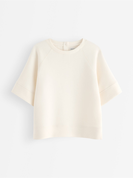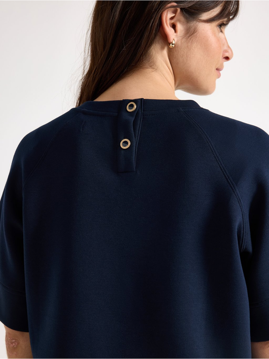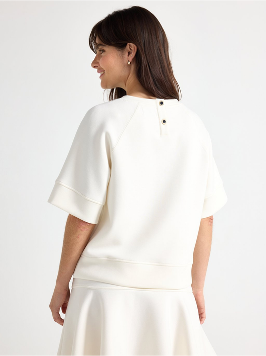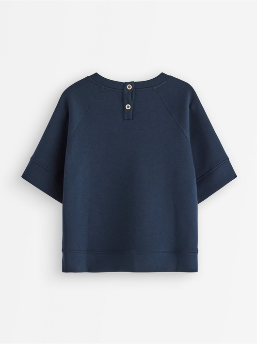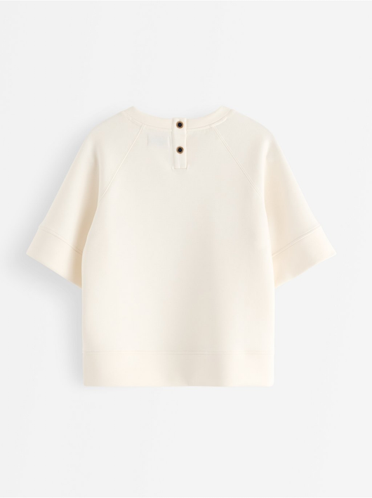 Short-sleeved sweatshirt in jersey with a round neckline and two buttons at the back of the neck.