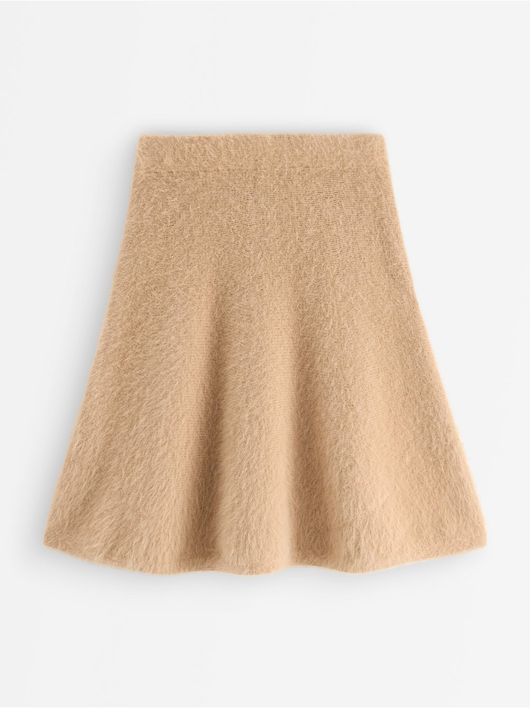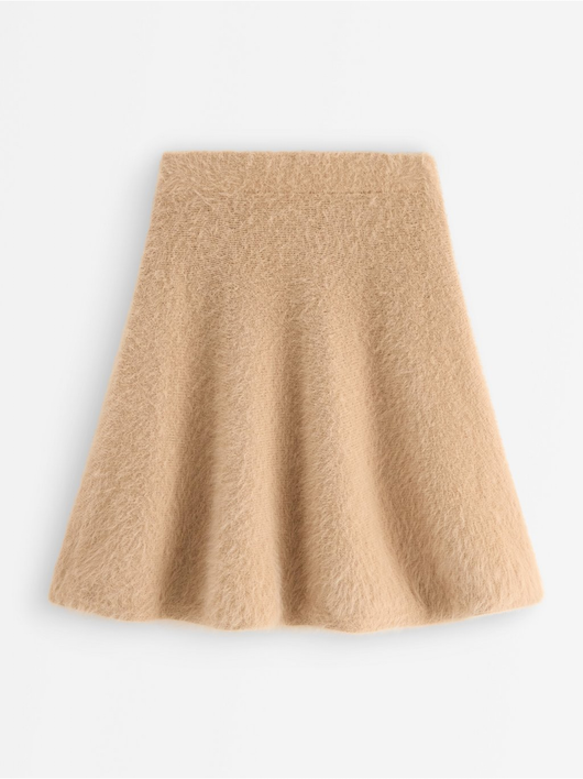 Knitted mini skirt with a flared fit and an elastic waistband.