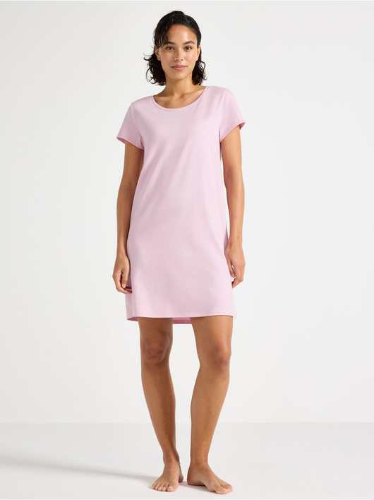 Nightdress with short sleeves and straight fit. This piece is partially made with COOLMAX® fibre. A recycled polyester fibre designed to wick moisture away from the body and keep you dry, cool and comfy during the night.