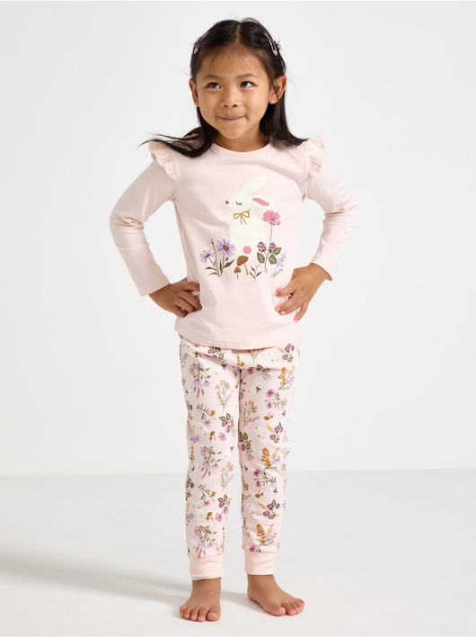 Cosy pyjama set in soft cotton jersey with a long-sleeved top and trousers with an adjustable, elastic waist.