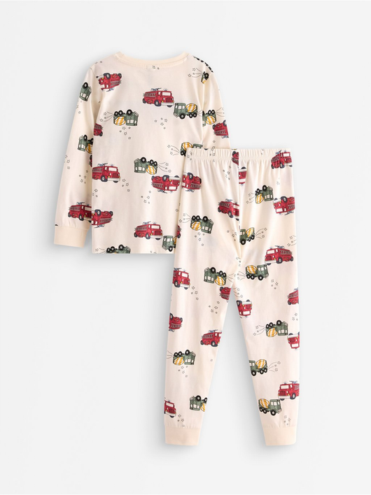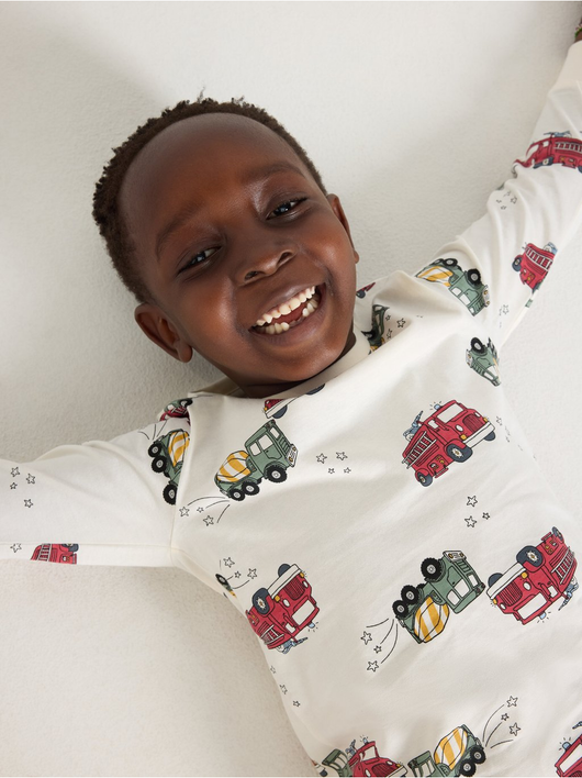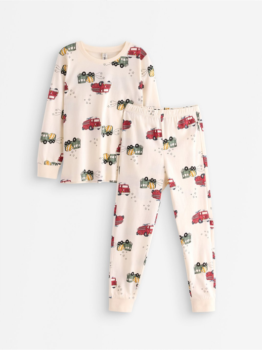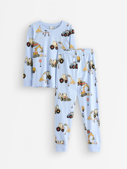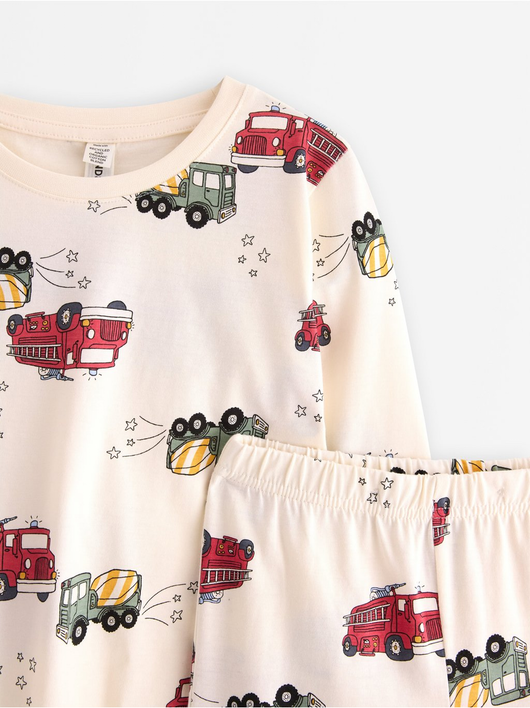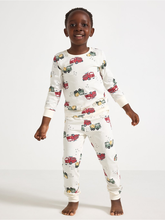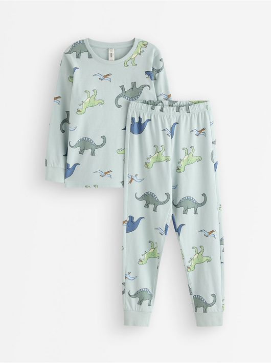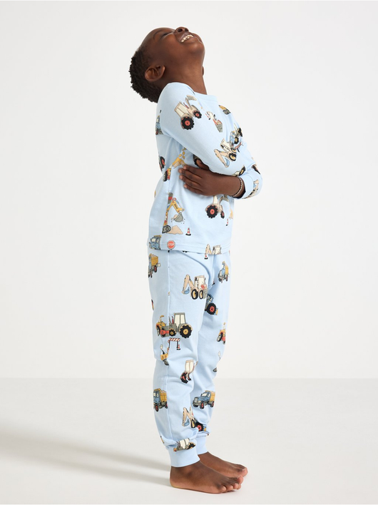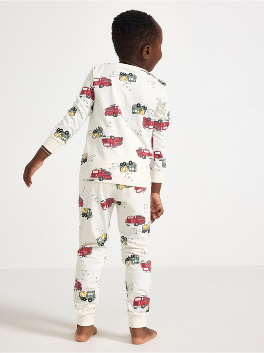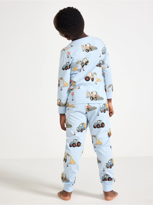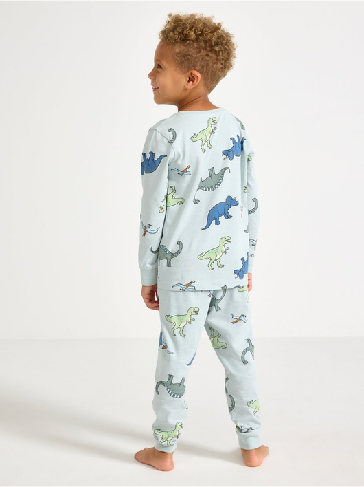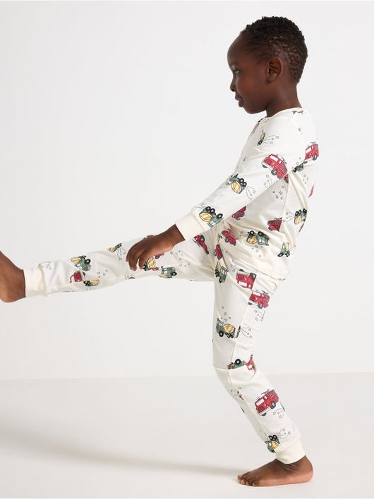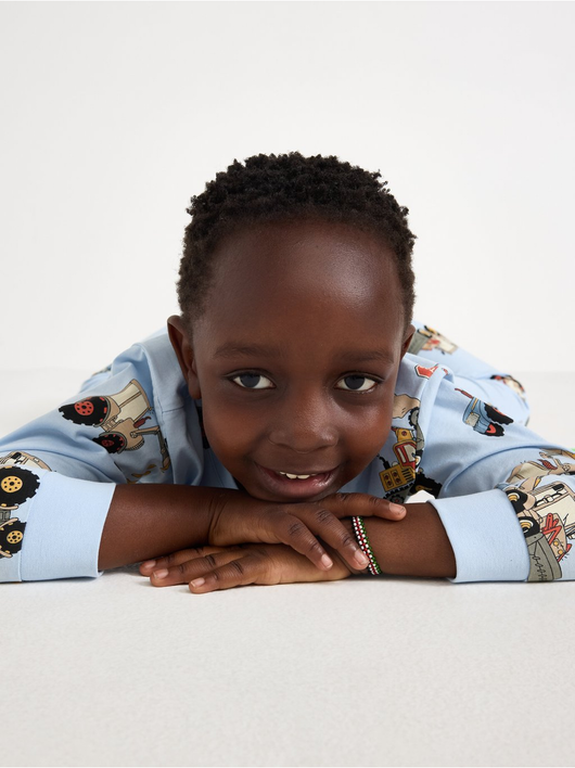 Cosy pyjama set in soft cotton jersey with a long-sleeved top and trousers with an adjustable, elastic waist.