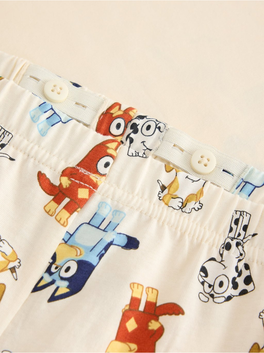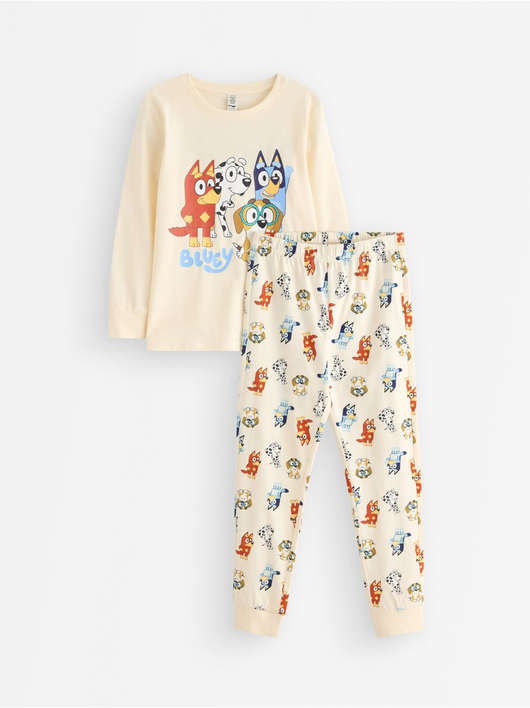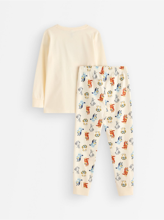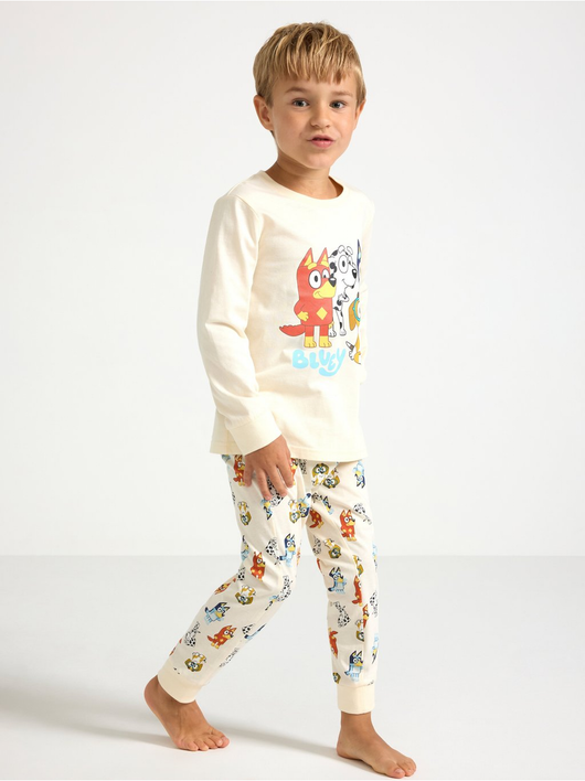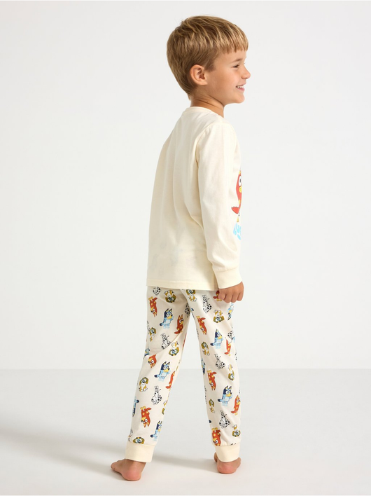 Cosy pyjama set in soft cotton jersey with a long-sleeved top and trousers with an adjustable, elastic waist.