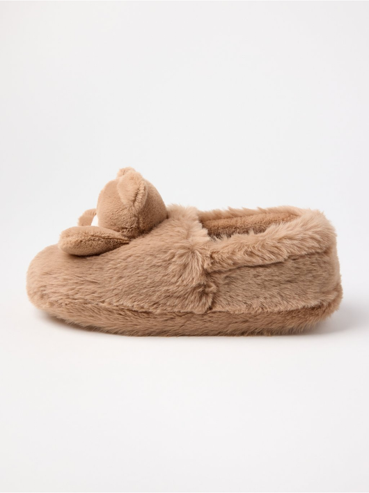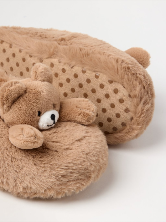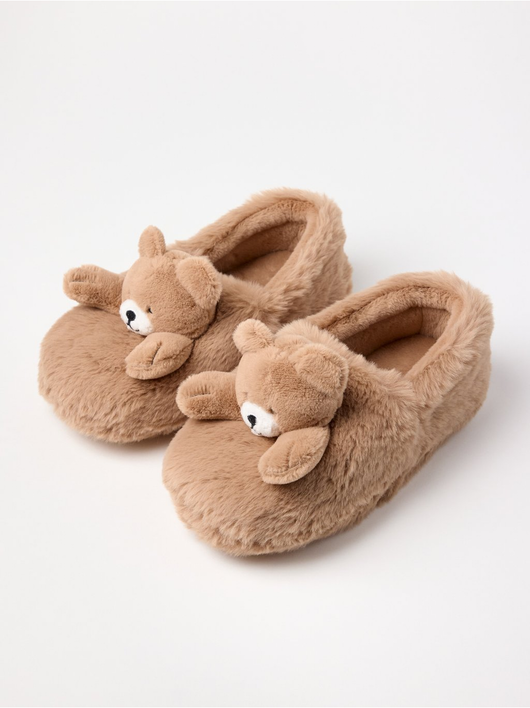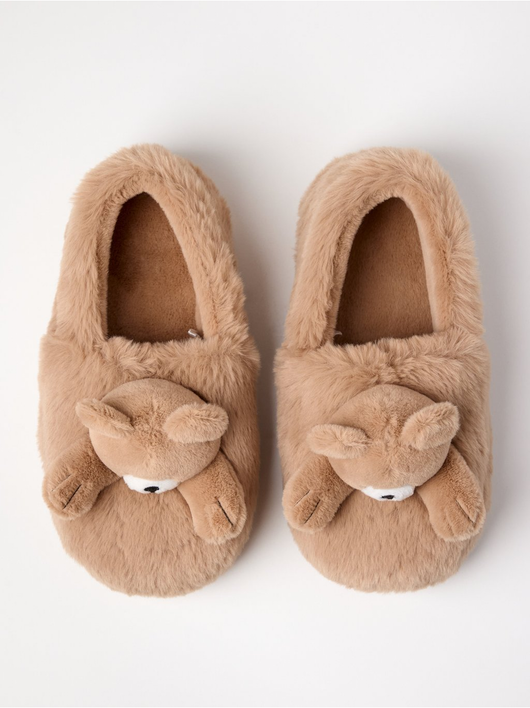 Comfy slippers in fake fur with teddy bears.