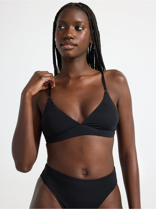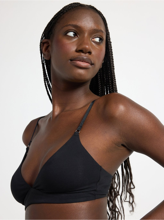 Comfy, unpadded soft bra in cotton with slim, adjustable shoulder straps.