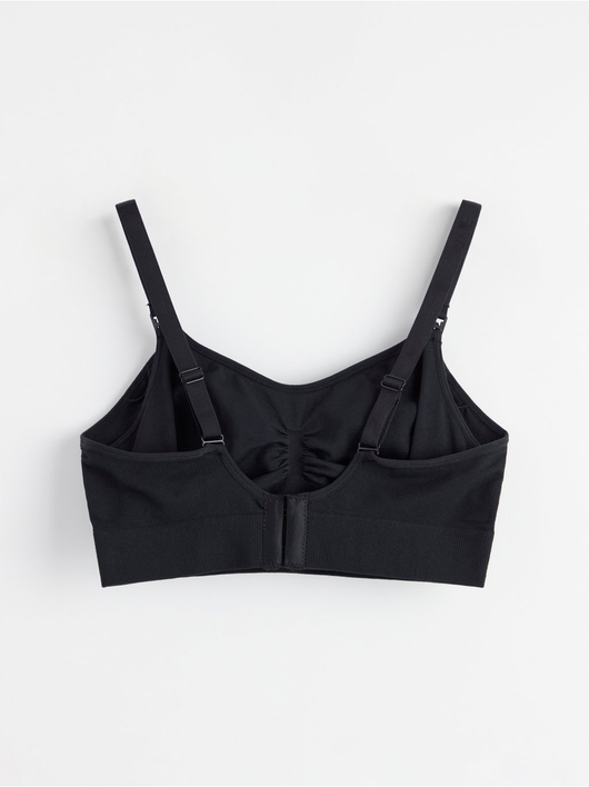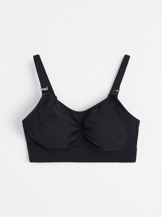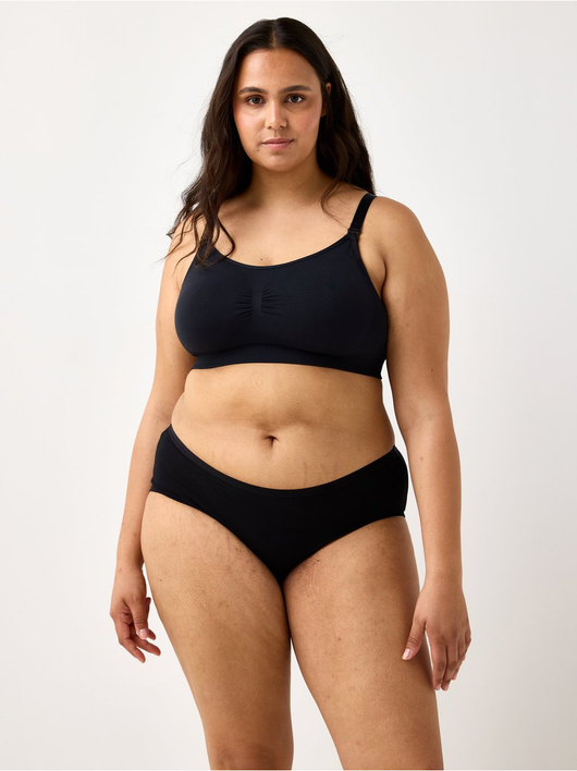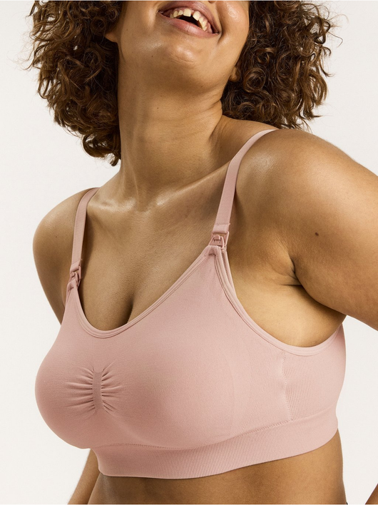 Nursing bra with easy-to-use drop cups and soft, seamless design. It features a wide hook-and-eye fastening to back and a comfortable inner frame for more support and coverage when breastfeeding. Comes in full cup sizes, which means more space for a fuller bust, but the same circumference as our regular sizes.