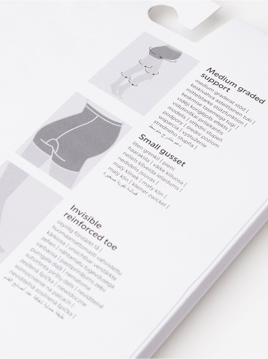 Comfortable tights with medium support and a special knit that gives stretch and support for the growing tummy.