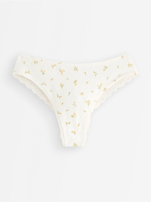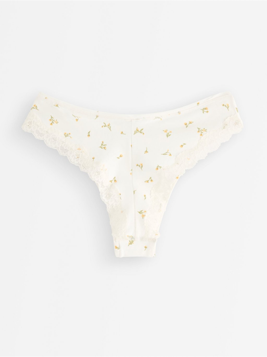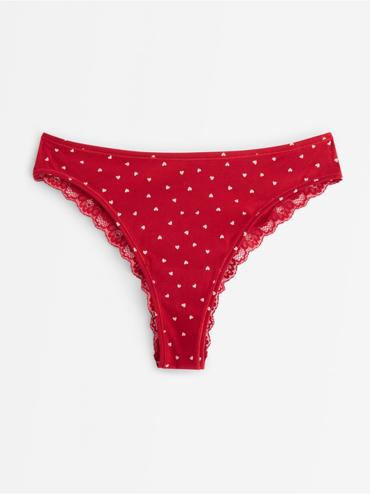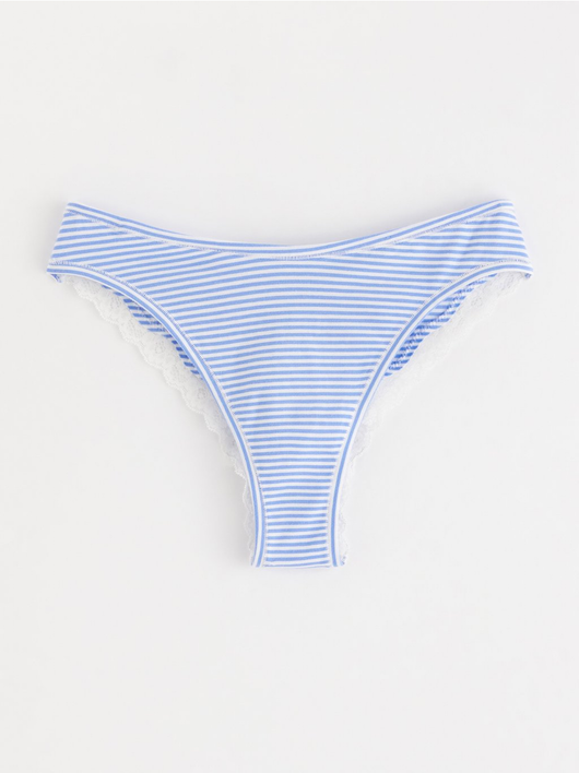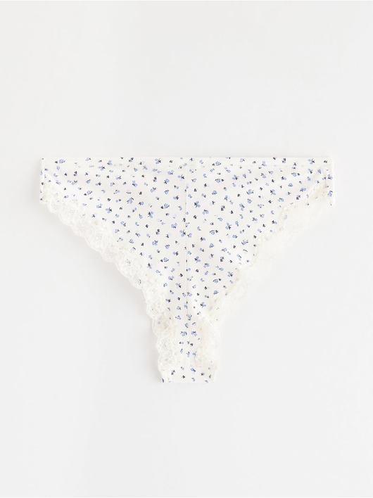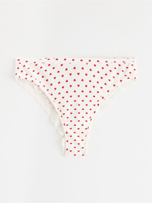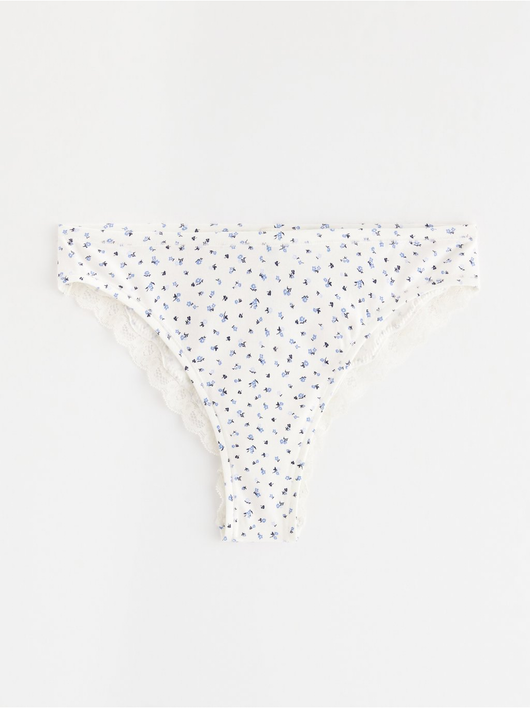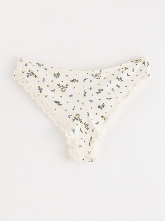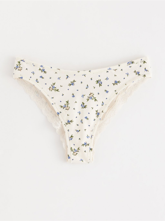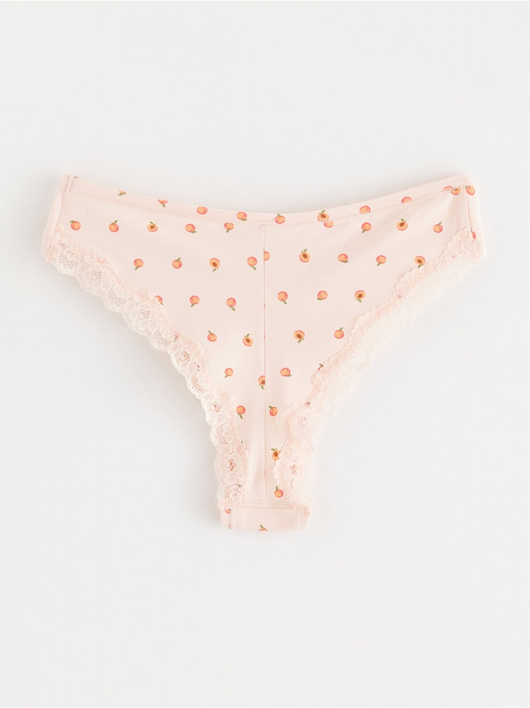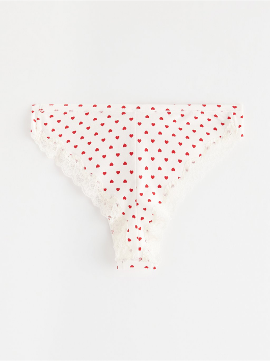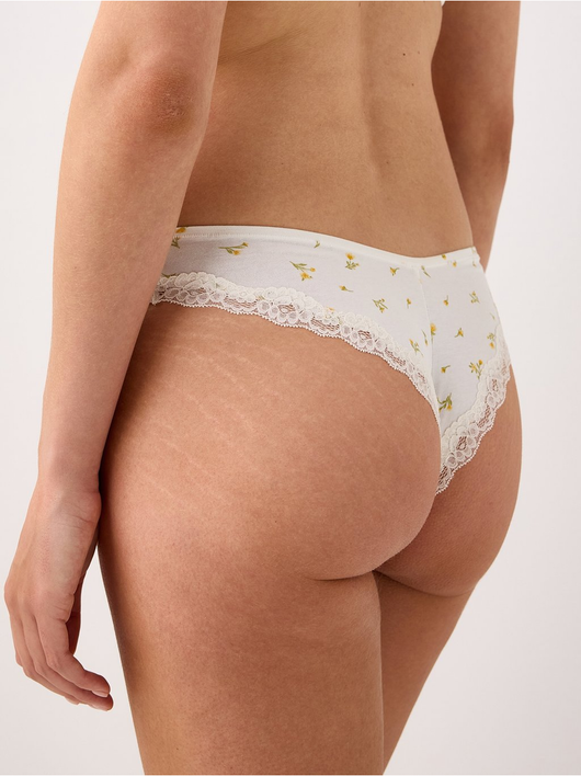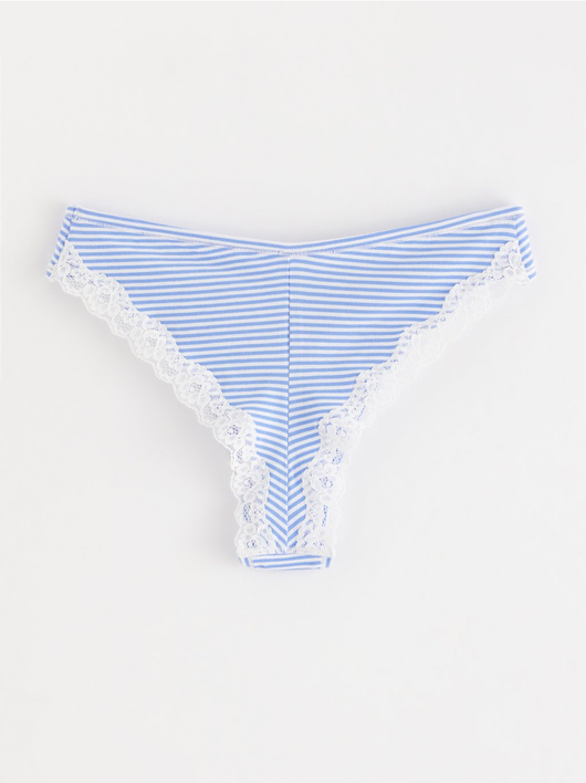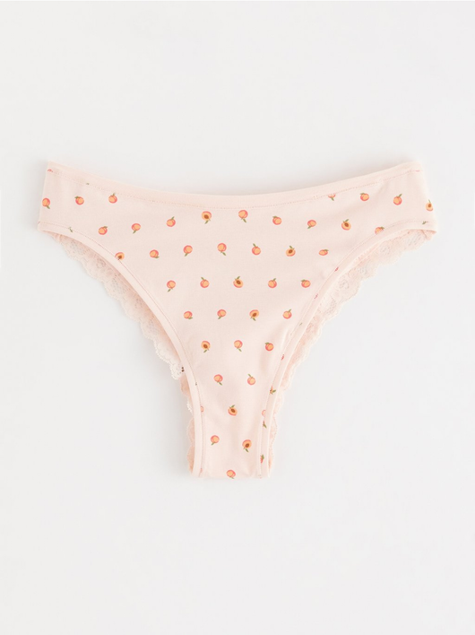 Soft brazilian briefs with a regular waist and a scalloped lace edge at the back.