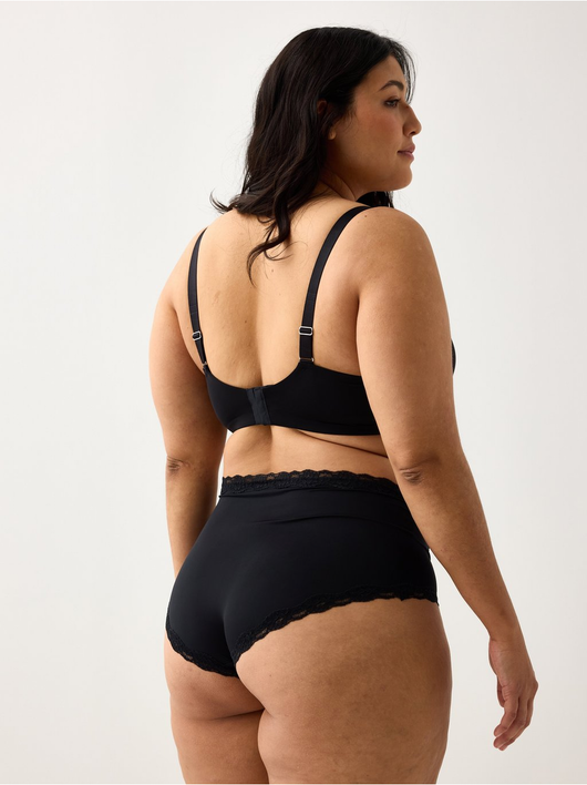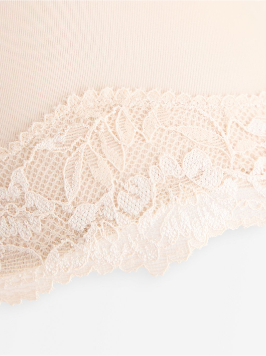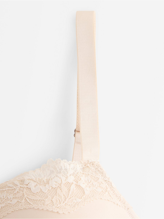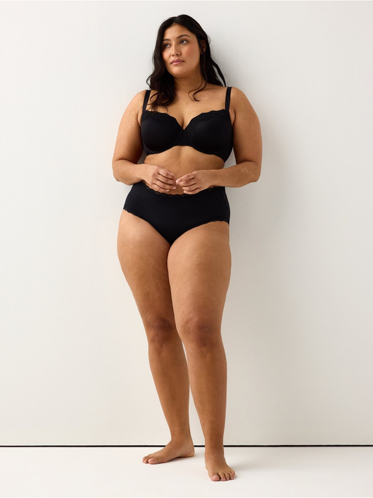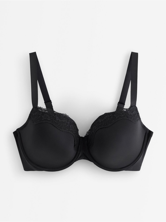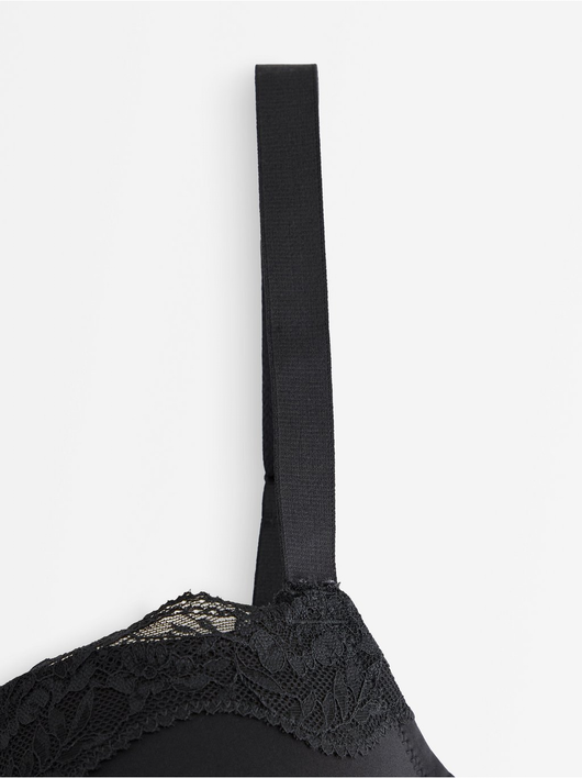 A comfortable balconette bra with fine lace at the front, midi coverage and thin padding.