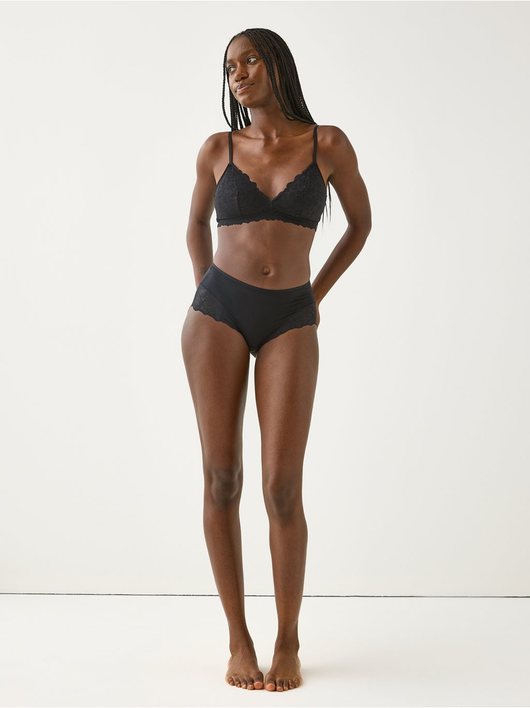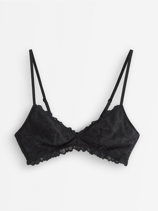 Super soft unpadded soft bra with mesh and lace.