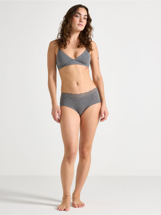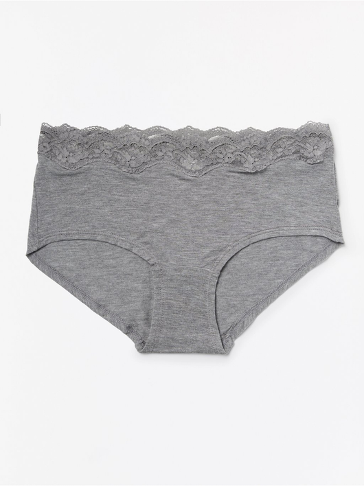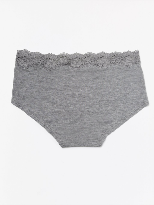 Soft and comfy briefs with a regular waist and a lace trim at the waist.