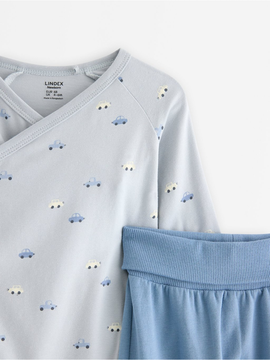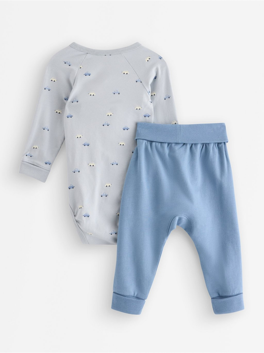 Matching set in soft and stretchy cotton with a long-sleeved bodysuit and comfy joggers.