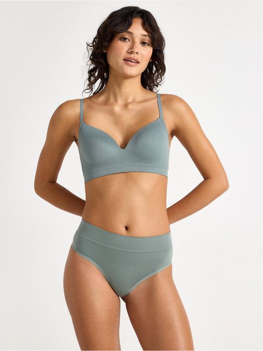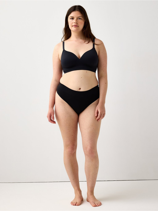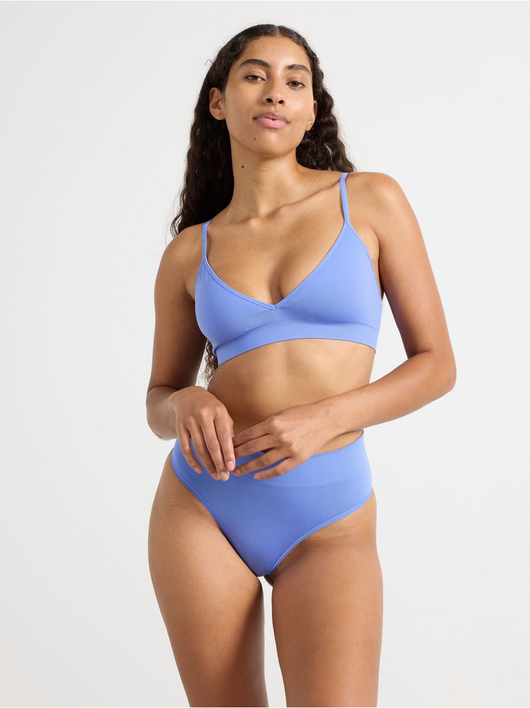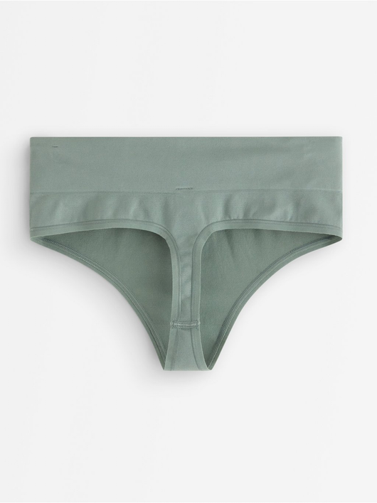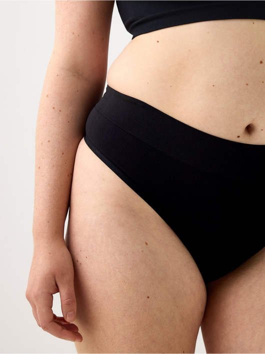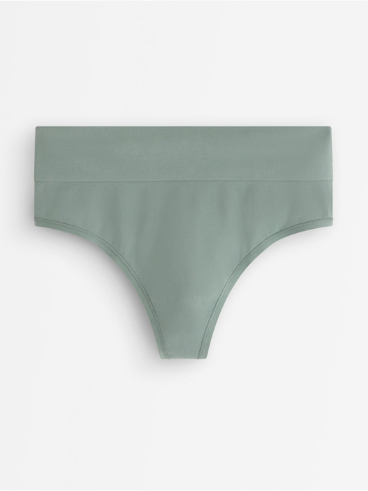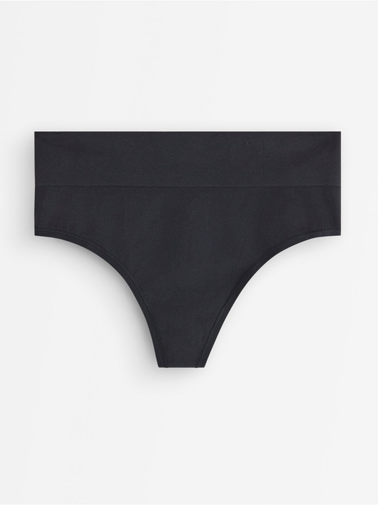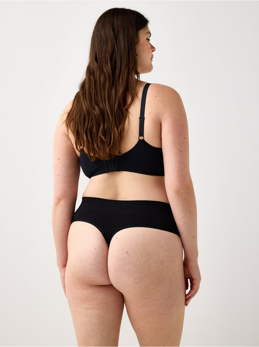 Seamless thong with a high cut leg and a high waist.