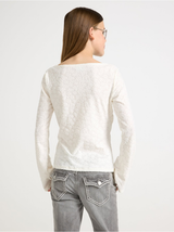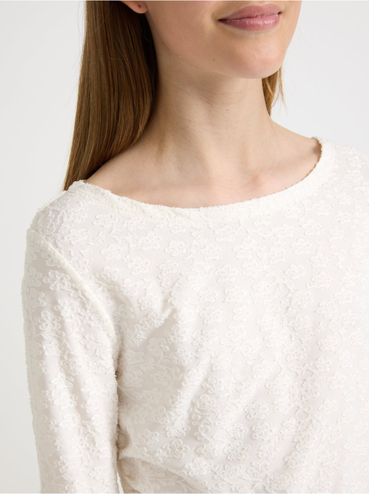Long-sleeved top with flowers.