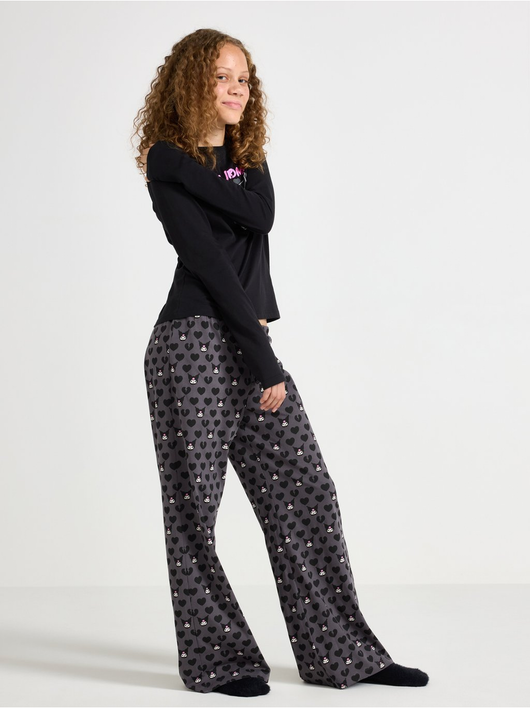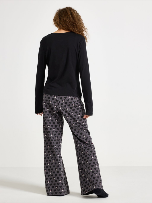 Comfortable pyjama set with matching top and trousers.