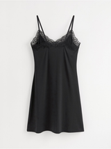 A beautiful black slip in soft quality with lustre featuring a sheer lace trim.